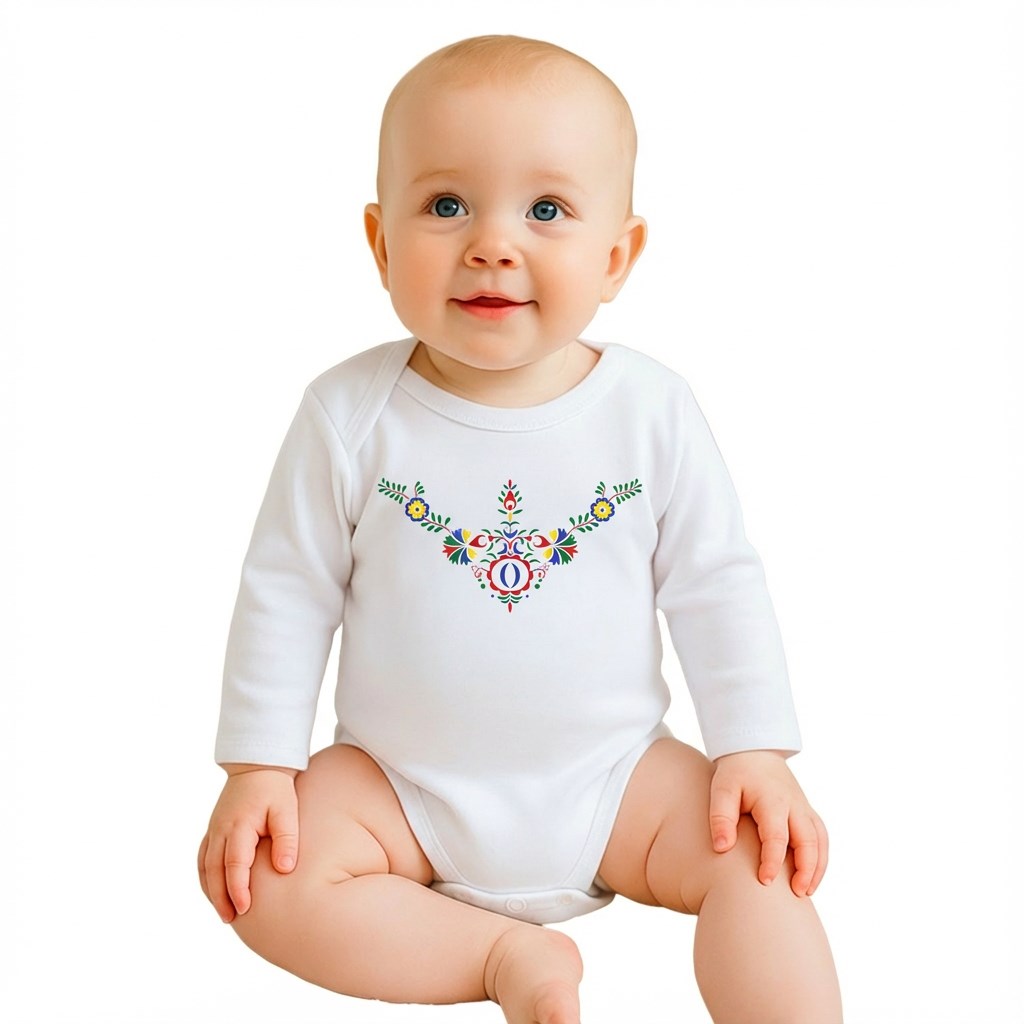 Eredeti, stílusos és kényelmes baba body gyönyörű folklór mintával, a New Baby-től, amely tökéletesen ötvözi a hagyományt és a modern dizájnt. Ideális választás a népi hagyományok kis szerelmeseinek, akik értékelik a minőségi anyagokat és az egyedi megjelenést. A folklór minta, amelyet hagyományos motívumok ihlettek, különleges bájt kölcsönöz gyermekének.