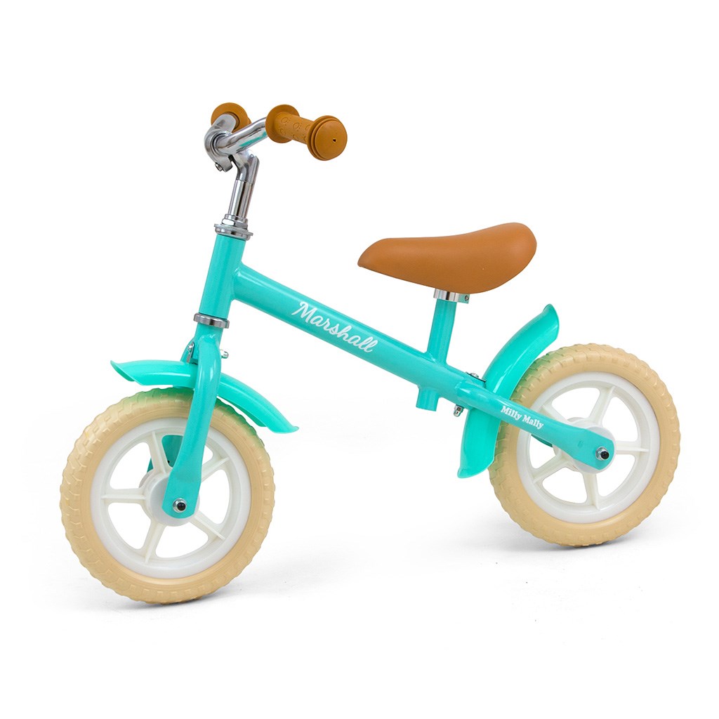 Gyerek futóbicikli Milly Mally Marshall. A futóbicikli tökéletes módja az egyensúly megtanulásához, ezáltal a későbbiekben a kerékpározás sokkal könnyebbé válik. A futóbicikli pedáloktól mentes, amely lehetővé teszi a gyermek számára, hogy főleg az egyensúlyra és a menetirányra összpontosítson. EVA habból készült tartós gumiabroncsok, fehér felniken, tartósak és nem igényelnek felfújást. Az ergonómiai alakú és puha párnázattal bevont állítható magasságú ülésnek köszönhetően, a futóbicikli gyermekével növekszik. Az állítható magasságú kormányt golyóscsapágyba van beleültetve. A csúszásmentes gumi fogantyúk biztonságos fogást és kényelmes kezelhetőséget biztosítanak a gyermek számára. A klasszikus és ergonomikus kialakítás biztosítja a hosszú élettartamot és a kényelmet használat közben. A futóbicikli acélkerete még nagyobb tartósságot biztosít és a konstrukció hosszú távú használatra készült.